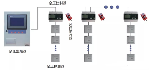 余壓監控系統由余壓監控器(主機)、余壓操控器、余壓探測器、風閥執行器、系統監控專用軟件等部分或悉數設備組成。以下為某品牌預壓檢測系統設備的系統結構與使用圖例,供參閱。