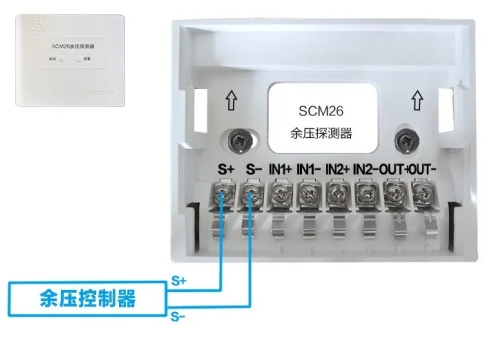 將"S+"、"S-"通過無極性二總線接入到余壓監(jiān)控器。