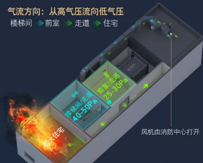 2)樓梯間與走道之間額壓差應為40Pa-50Pa;