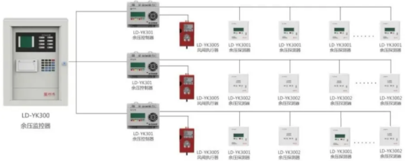 消防應急疏散余壓監控系統由余壓監控器、余壓控制器、電動泄壓風閥執行器、余壓探測器、引壓氣管及系統監控專用軟件等部分或全部設備組成。
